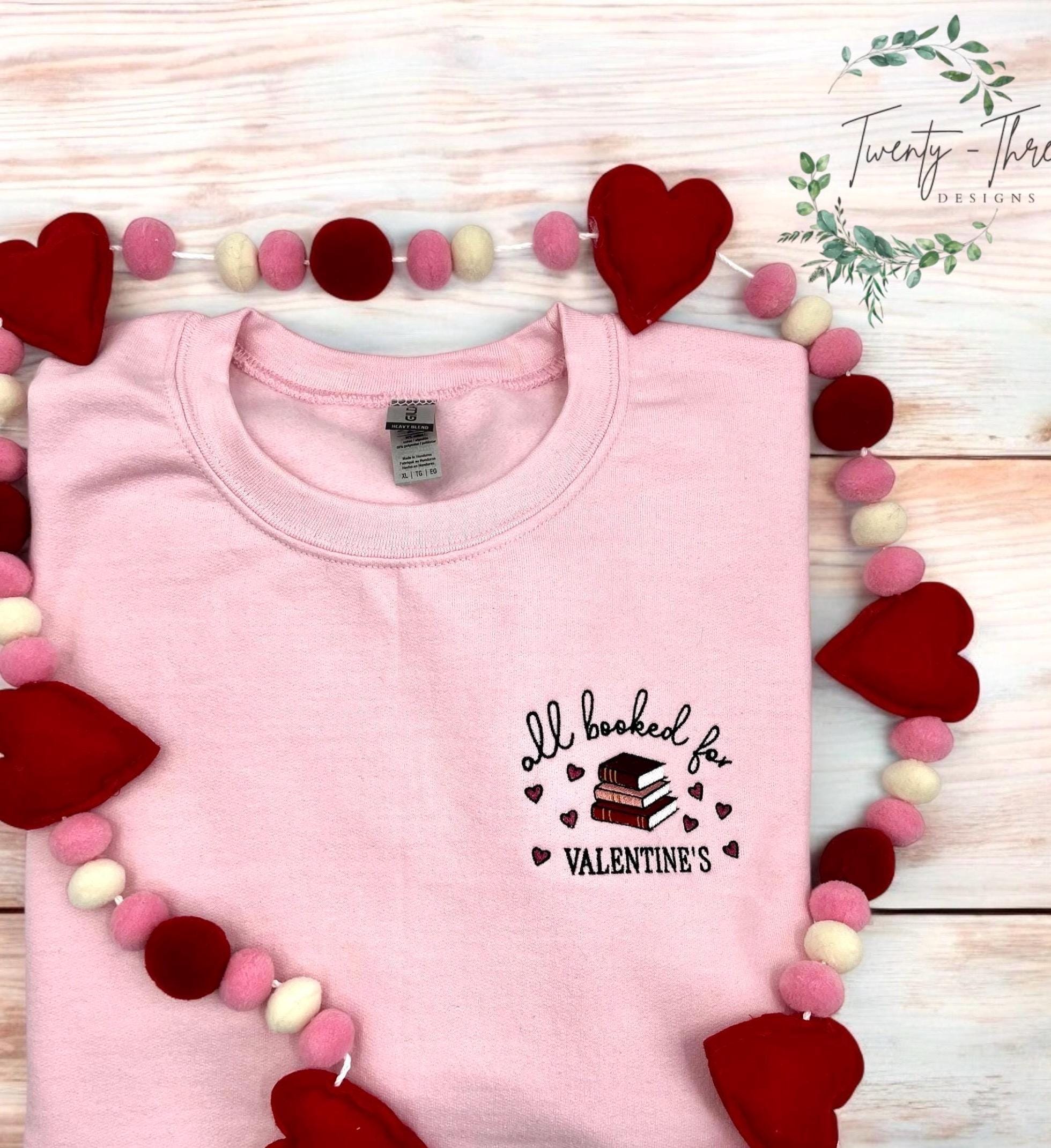 This embroidered Valentines All booked for Valentines sweatshirt will keep you cozy and cute this Valentines season!