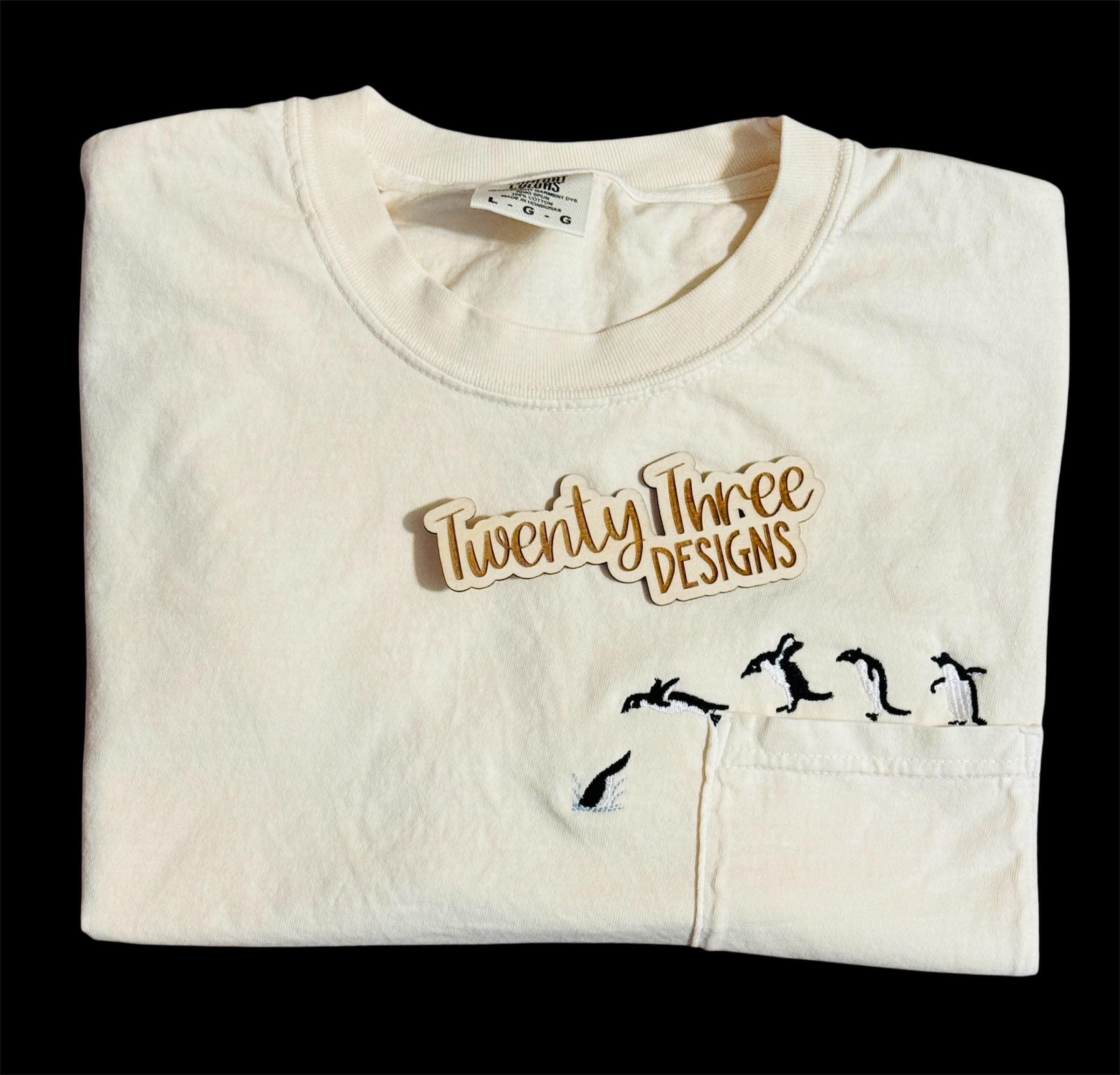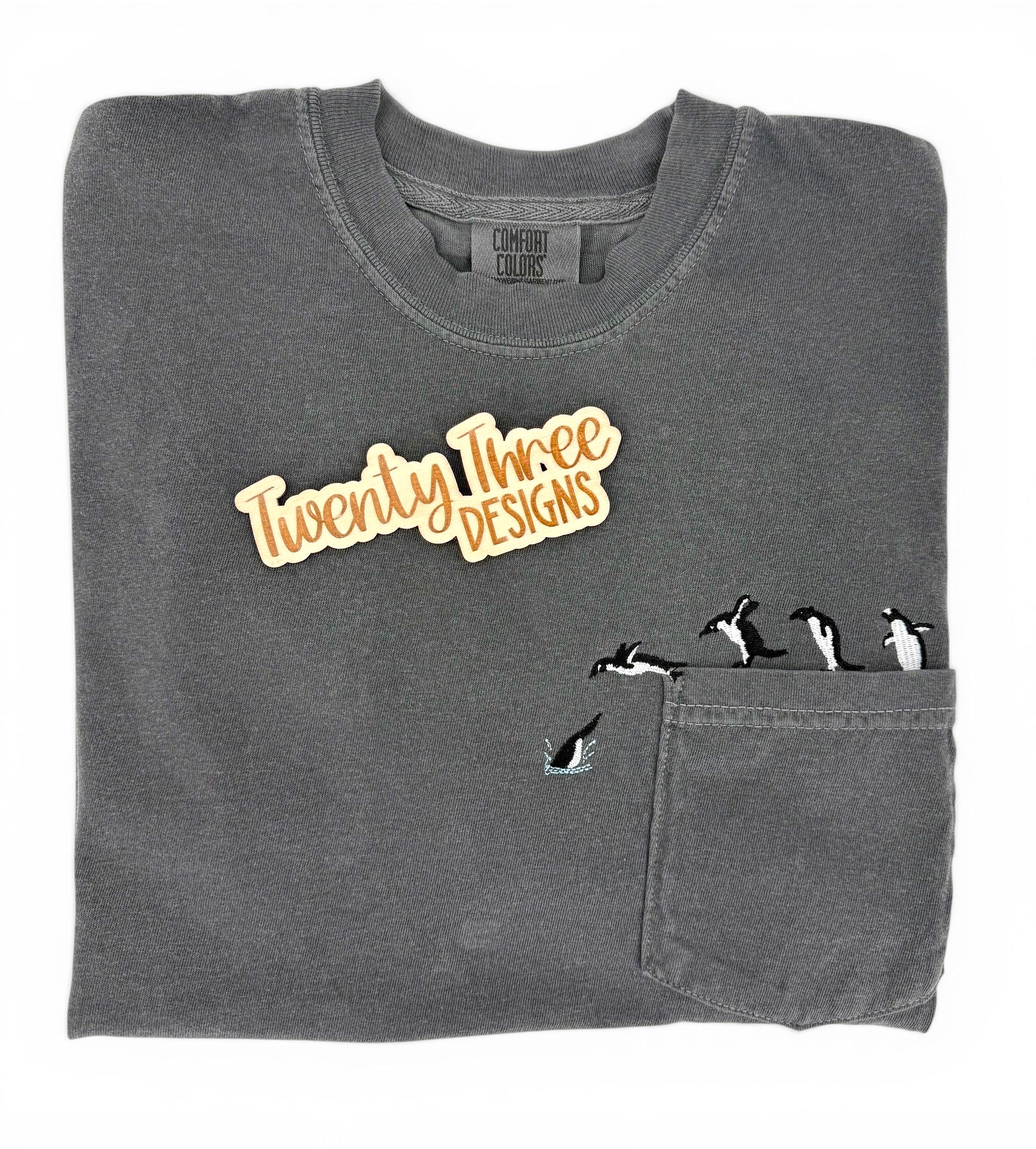 🐧 Penguin Diving Pocket Tee – Comfort Colors – Embroidered Pocket Shirt 🐧