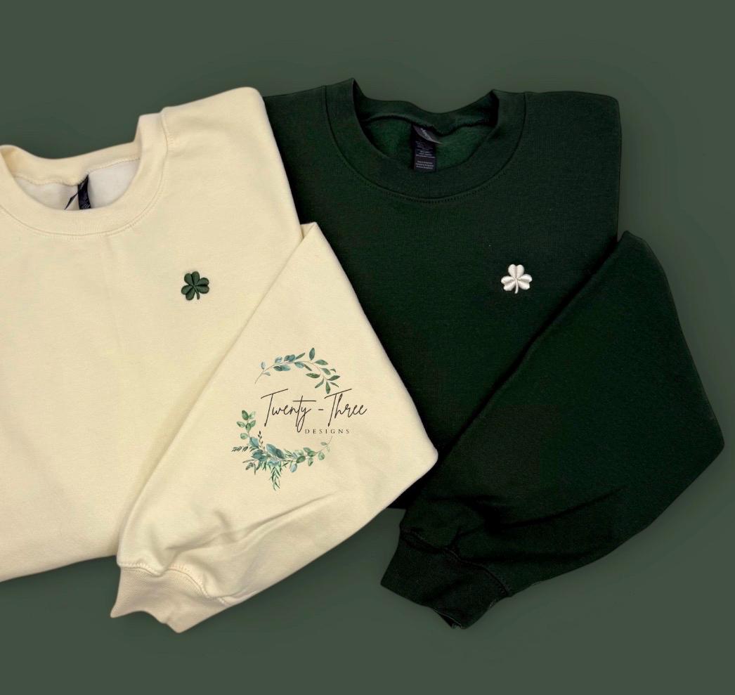 Embroidered Lucky Clover Sweater , just in time for St. Patrick’s Day ☘️ Available in extended sizes.